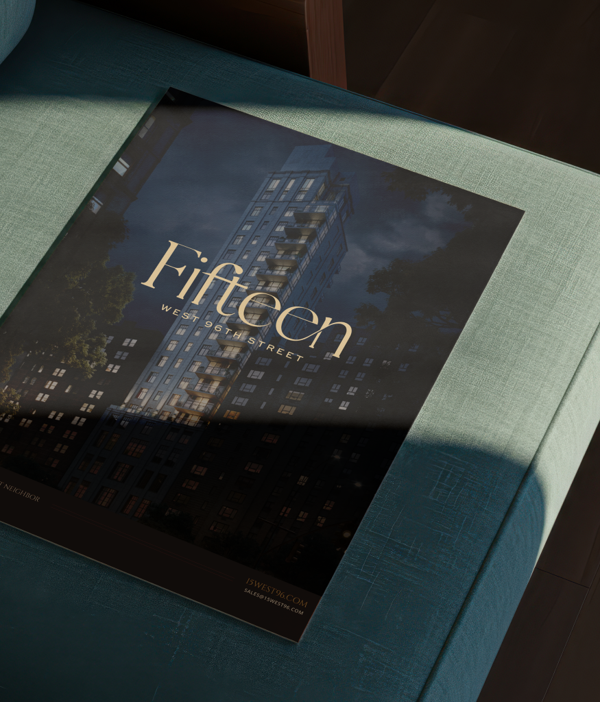 In collaboration with The Agency / Team Carte Blanche and Sackman Enterprises, Little House led the creative development for 15 West 96th Street, a boutique residential property on Manhattan’s Upper West Side. From moodboards and logo design to print collateral and website design, we crafted a visual identity that captures the building’s sophistication, warmth, and sense of place. The result is a refined, modern brand experience that mirrors the timeless character of its New York City surroundings.